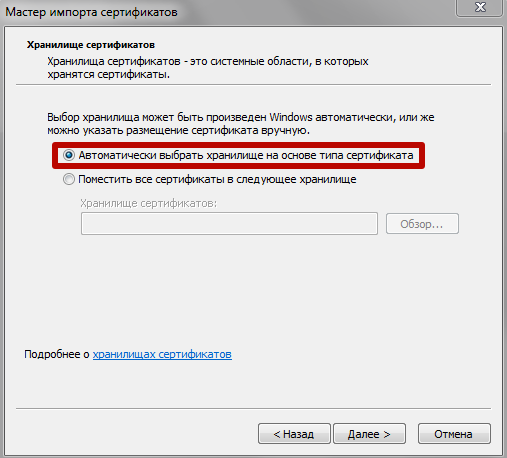 4. Навести курсор на скаченный файл, нажать правую клавишу мыши и выбрать пункт "Установить список отзыва (CRL)". В "Мастере импорта сертификатов" на этапе определения хранилища необходимо выбрать пункт "Автоматически выбрать хранилище на основе типа сертификата".